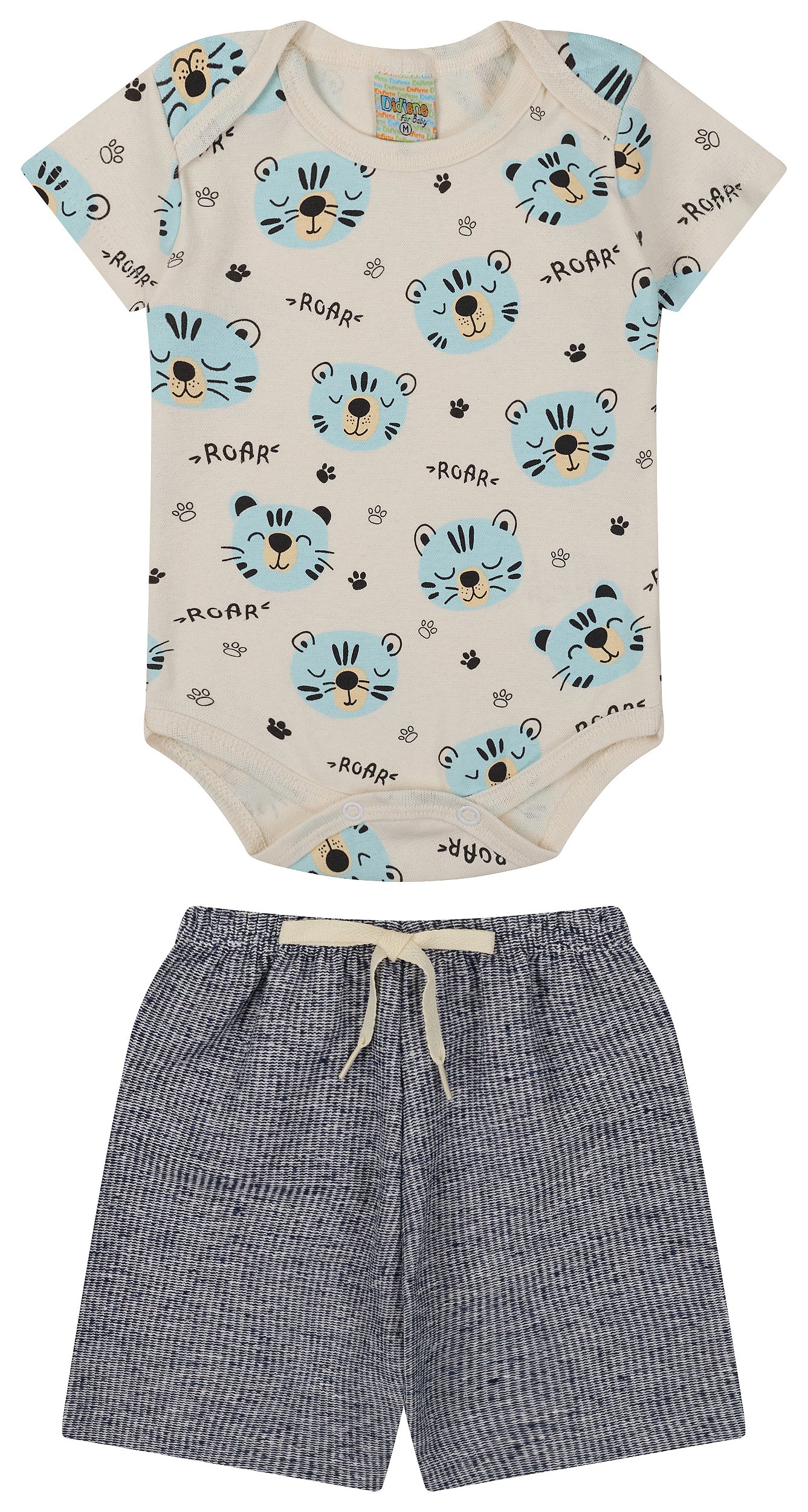 Lindo conjunto de body ribana e bermuda eco canele para meninos da marca Didiene. Body nas cores off white, e shorts nas cores areia, verde militare marinho. Confortável para o dia a dia.